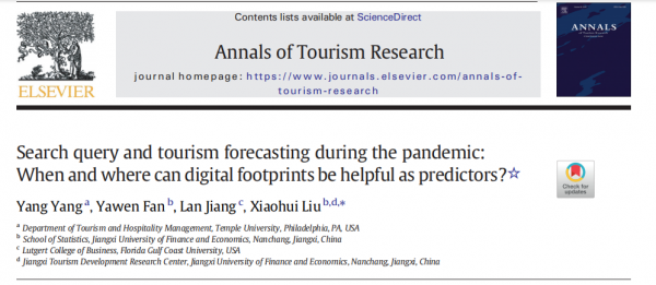 近日,统计学院刘小惠教授、范雅文同学与美国天普大学Yang Yang教授、佛罗里达海湾海岸大学Lan Jiang教授共同合作完成论文《Search query and tourism forecasting during the pandemic: When and where can digital footprints be helpful as predictors?》