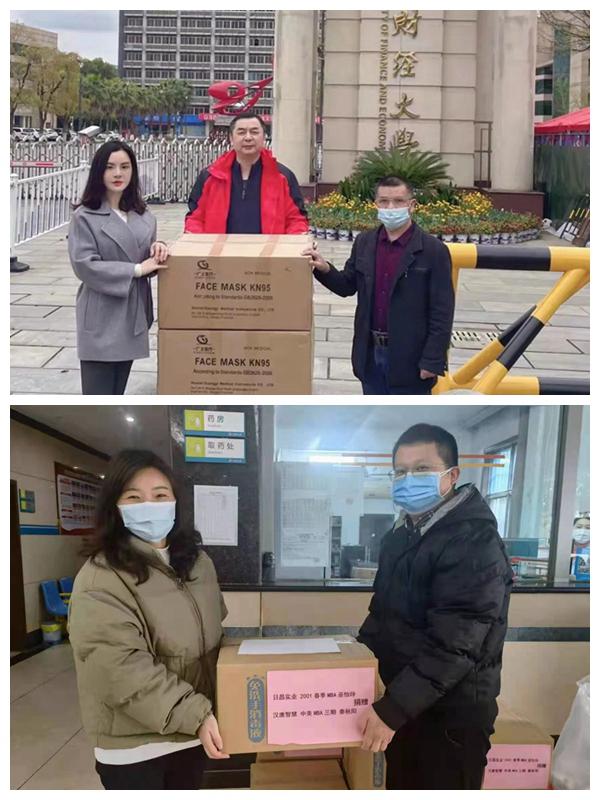 与此同时,来自各行各业的江财工商校友也纷纷在关键时刻向母校、母院伸出援手:2003级工商2班16位校友代表向学院400间学生宿舍捐赠总价值约4.5万元的防疫物资;工商管理学院本科校友,目前正在学院攻读MBA硕士研究生的黄亮、王晓宇两位校友向学院捐赠总价值1.5万余元的防疫物资……