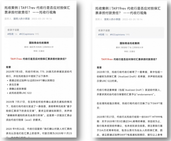 根据之前的安排,有4位同学翻译两个本周将讨论的国际商会跟单托收案例,下图是本人批改学生翻译稿的截图: