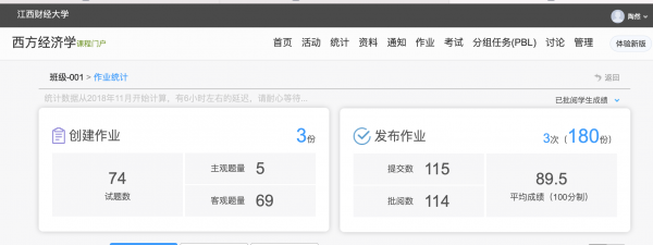 目前来说,由于只是开学的第五周,所以作业布置的量并不太多,绝大部分同学都按时提交了作业,并且从作业的成绩来看,也是令人满意的,说明学生对现有知识的掌握还不错。