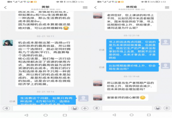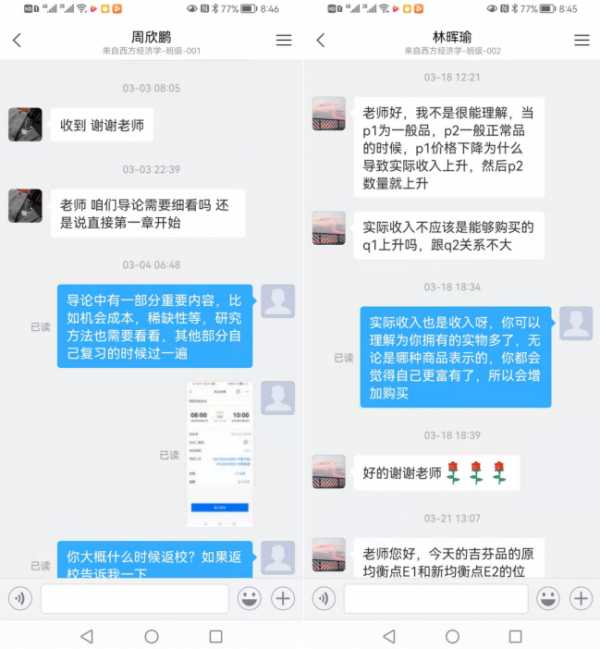 课后鼓励学生针对课堂上没听懂的问题跟老师讨论和交流。不少同学会利用学习通向我提问,同时也会向助教提问。