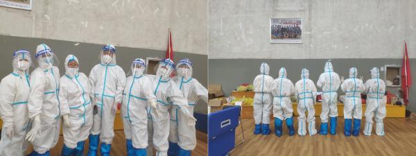 防护服、口罩、橡胶手套,白衣盔甲,披坚执锐。他们坚守在离病毒最近的地方,争分夺秒地进行核酸采样的工作,他们相互配合,紧张而有序地完成了每次学校两万余份的核酸检测工作,为江财防疫筑牢了一道“防护墙”。致敬!战“疫”中的江财人!愿这轮疫情早日画上句号。待疫散花开,熟悉的生活终将回归,重启一切人间美好!(文/舒佳珠 图/刘丽 审核/一审 姜莹 二审 赵旻 终审 李大晖)