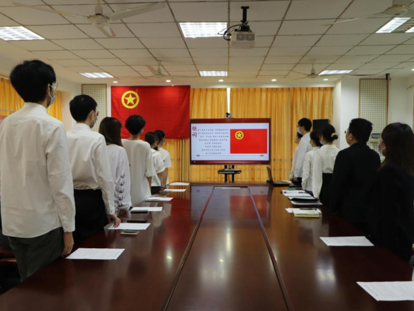 5月4日,在中国共产主义青年团成立100周年之际,我校举行新发展团员入团仪式。受疫情影响,本次仪式采取线下与线上相结合的方式进行。校团委书记夏贤锋、校团委副书记阳铃、校团委兼职副书记陈曦,全国优秀共青团员裴子涵、全体2021年度新发展团员及部分团小组组长代表、校团委及各学院团委基层团组织建设部工作人员参与本次活动。