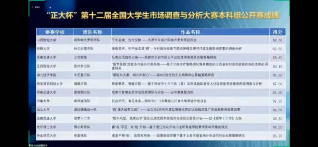 5月28日至29日,由中国商业统计学会主办、江汉大学承办的“正大杯”第12届全国大学生市场调查与分析大赛本科组总决赛开幕式在线上举行。本届市场调查大赛于2021年9月启动,大陆赛区共有815所高校,近18万名大学生报名参赛。其中,共有来自全国31个省(自治区/直辖市)的708所高校,14.6万名本科生报名参赛。历经7个月的时间,经过知识赛、校赛和省赛的层层选拔,最终有126所学校、共211支团队入围本科组全国总决赛,总决赛进入率不到1%。我校参赛团队斩获本科组全国总决赛第一名。
