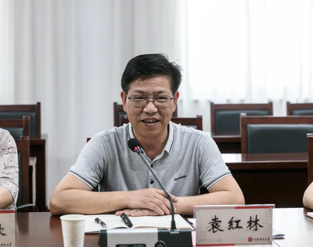 袁红林对省教育厅领导来校调研指导工作表示热烈欢迎,并代表学校围绕调研内容,从建设责任如何落实、关键重点指标如何推进、建设经费如何使用和建设过程如何激励等方面作了汇报。统计学、应用经济学、管理科学与工程、工商管理等省“双一流”学科负责人作了补充发言。