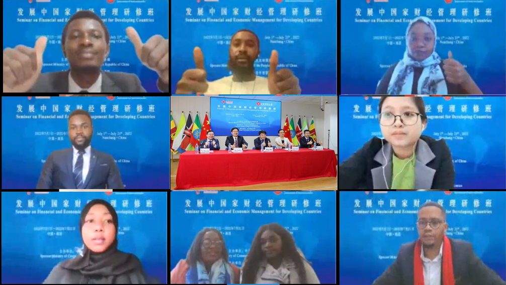 7月1日下午,由商务部主办、江西财经大学与江西外语外贸职业学院联办的发展中国家财经管理研修班开班仪式在我校举行。江西财经大学校长邓辉、江西省商务厅对外投资和经济合作处一级调研员黄雪芹出席仪式并致辞。江西外语外贸职业学院党委委员饶建华、江西财经大学国际文化交流中心主任杨勇以及来自埃塞俄比亚、塞拉利昂、斯里兰卡、肯尼亚等18个国家的47名学员云端参加了仪式。活动由国际经贸学院院长吴朝阳主持。