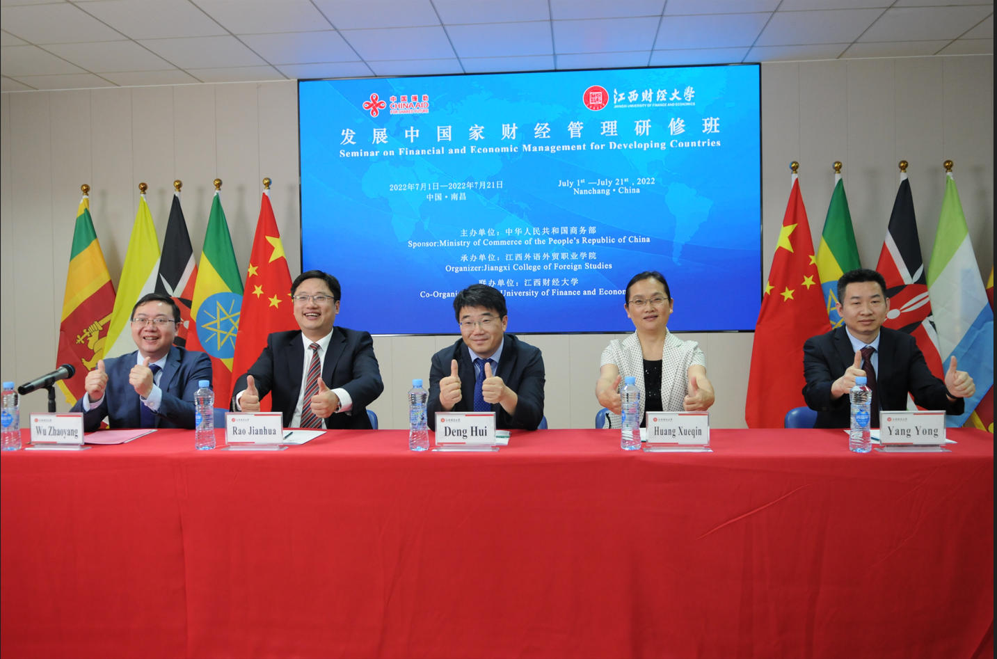 即便是相聚云端,47位学员对本次研修班的期待与热情丝毫未减,天涯共此时,全体参会人员竖起大拇指共同记录下这一幕美好的画面。受全球疫情影响,本次研修班将通过线上的方式举办,为期21天。研修期间,学员们将参与专题讲座和专题研讨,并通过“云”参观考察江西相关企业和传统文化景点,切身感受中国经济的迅猛发展和中国优秀传统文化的博大精深。