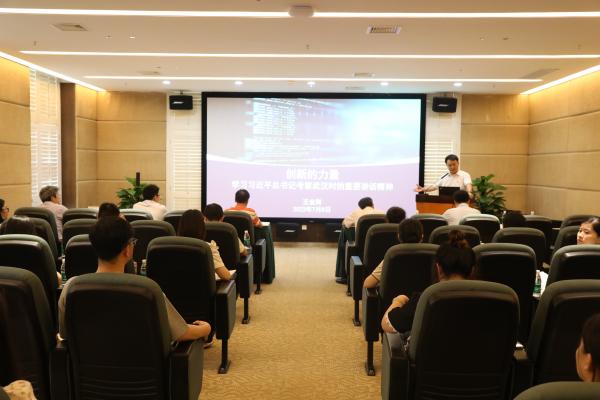王金海教授以“创新的力量——学习习近平总书记考察武汉时的重要讲话精神”为题,为学员们上了一堂生动的微党课。王金海从科技自立自强的重要性、核心科技、高端制造、科技创新等方面传达了习近平总书记在武汉考察时的重要讲话精神。王金海着重从我国知识产权事业发展的战略背景、总体要求、制度、体系和运行机制等方面讲授了知识产权保护对保障创新型国家建设和全面建成小康社会目标的实现的重要作用和意义。他进一步阐述了在“十四五”时期,国家知识产权保护与应用规划,再次突出了创新的力量。