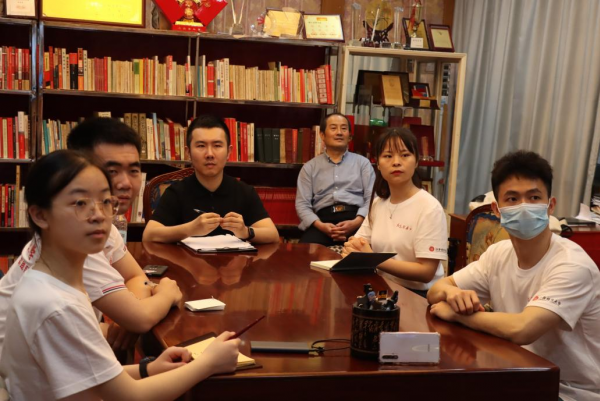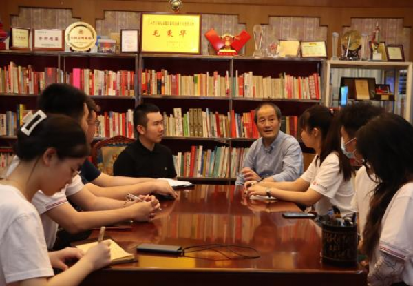 参观结束后,先锋团就“红色剧本+”项目中遇到的有关人物塑造、史实考究、内涵提升等创作问题与毛汝亭、毛浩夫先生进行研讨。最后,毛浩夫先生接受团员们的采访,用自己的亲身经历,感召团员们学党史、跟党走、听党话、感党恩。