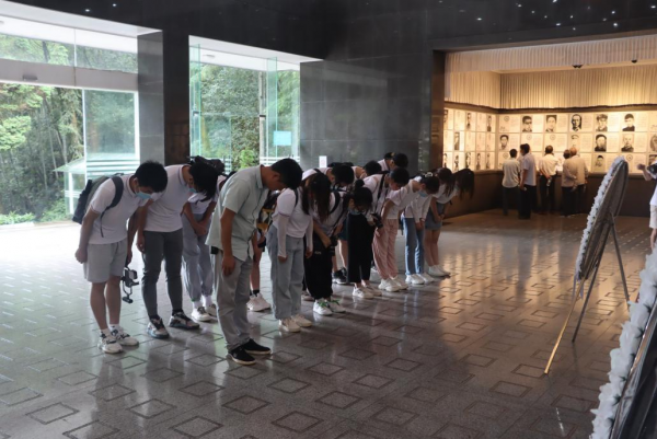 来到纪念堂前,高大的汉白玉石墙面前镌刻着“死难烈士万岁”六个庄严神圣的大字,两名学员缓缓将花圈放在纪念堂前,大家鞠躬、驻足、行注目礼,用心感受井冈山精神,深切缅怀先烈,告慰不朽英灵。