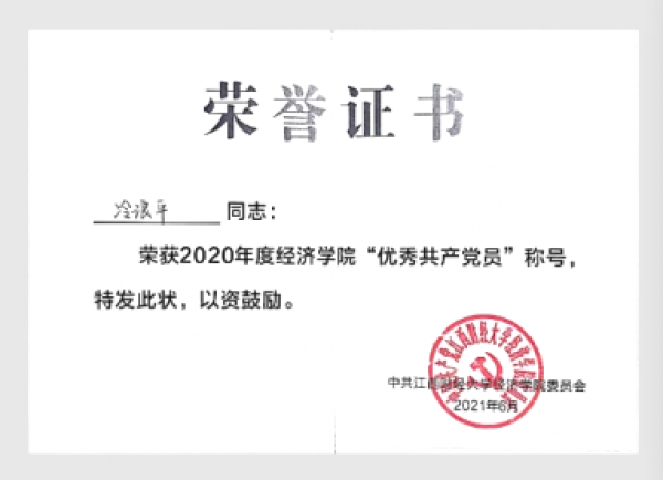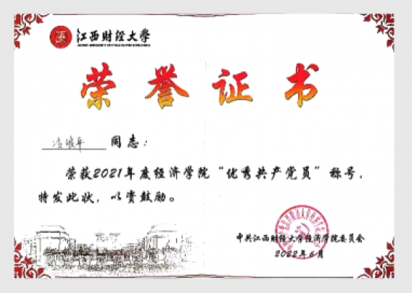 【个人简介】冷浪平,男,中共党员,经济学院2020级人口、资源与环境经济学博士研究生,研究方向为农业农村发展。读研期间,知行合一,用农村沃土结科研硕果,荣获国家奖学金、省政府奖学金、优秀共产党员、乡村振兴优秀成果奖、中国城郊经济年会一等奖、省数据建模大赛二等奖等荣誉称号。近日,江西省教育厅发布2022年江西省研究生“双十佳”评选结果,冷浪平荣获2022年江西省博士研究生“十佳实践之星”称号。