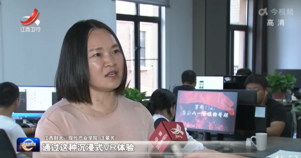 近日,江西卫视《新闻联播》栏目“建军精神永放光芒”专题中报道我校虚拟现实(VR)现代产业学院通过制作红色文化教育VR影片铭记光辉历史,传承红色基因。