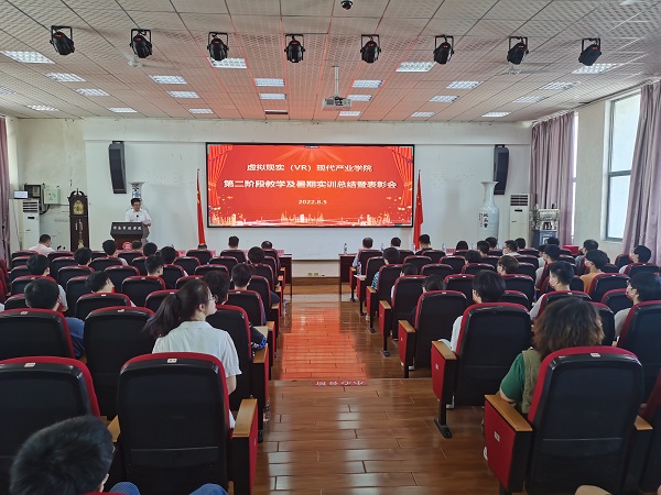 会议最后,廖国琼做了简要总结。本次实训是学院在产教深度融合上的一次积极探索,达到了预期目标。此次实训能顺利完成既得到了学校与参训企业的大力支持,也得到了学工处、教务处、智慧校园管理中心、后勤与资产管理处、保卫处和校医院等多个部门的大力帮助和条件保障,代表学院表示感谢。希望同学们做好实训总结,制定最后一年学习规划,强优势、补短板,进一步提升就业竞争力。同时,希望同学们珍惜暑假时间,做好疫情防控和安全防护,过一个舒心和安全的假期。(图文/虚拟现实(VR)产业学院姚春)