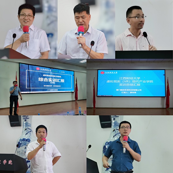 江西中直新经济产业发展有限公司、HTC南昌威爱信息科技有限公司、江西中科百合智能科技有限公司和厦门触控未来科技有限公司企业负责人分别对实训成果进行汇报。经过八周教学及项目实训,同学们不仅在VR技能上得到明显提升,而且通过策划、设计和完成准商业项目,充分地挖掘潜力,提升了学习和就业信心。