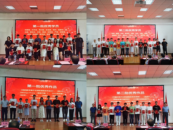 虚拟现实(VR)现代产业学院党总支书记彭敏宣读优秀学员及优秀作品表彰决定。此次实训涌现了一批积极分子和优秀作品,经企业推荐及组织评选,共评选出38名优秀学员和22件优秀作品。参会嘉宾为优秀学员和优秀作品颁发证书。