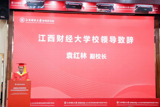 “‘士不可以不弘毅,任重而道远’,保持一个优秀的江财人身份继续前行,奋力拼搏、积极向上。”袁红林代表学校向全体2022届毕业生表示热烈的祝贺,并提出了希望和要求,与各位校友、毕业生共勉。