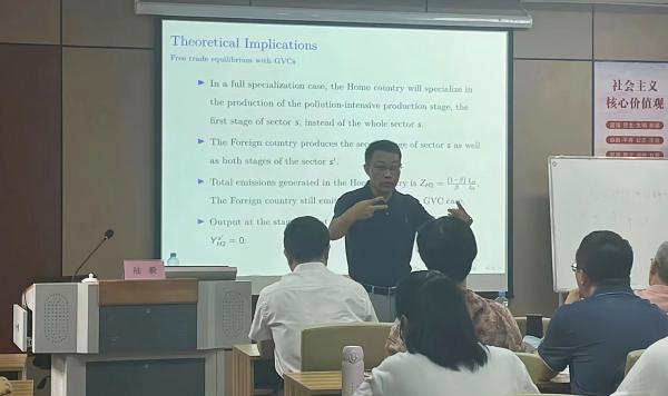 9月2日上午,陆毅教授在翼轸楼1111教室为我院师生开展了一场以“Global Value Chains and World Pollution Emissions”为题的学术讲座,许统生教授主持讲座。陆毅教授在CES函数的基础上层层深入,构建了“dirtysector”“cleansector”双部门模型,同时结合污染排放的阶段和全球价值链的上下游等重要话题为我院师生讲述了一场生动而创造性的研究,师生们受益匪浅。