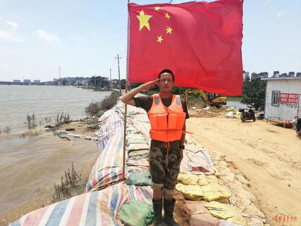 辗转一圈,车辆将他送到了湖城大桥上——这里是守卫整个鄱阳县城的第一道防线,此时水位线已超警戒水位2.8m,情况十分严峻。刘绍军很快被就地编入机动支队,和这里的武警官兵们一起忙碌起来。当晚,刘绍军连夜手写了一封请战书,里面写道:“多个人,多份力,虽然我不是鄱阳县人,但作为一名退伍军人,又是新时代大学生,我的内心不允许我不作为。我懂得抗洪的危险性,但军人何惧之有?我自愿加入抗洪一线,无论生死都将与洪魔斗争到底。”