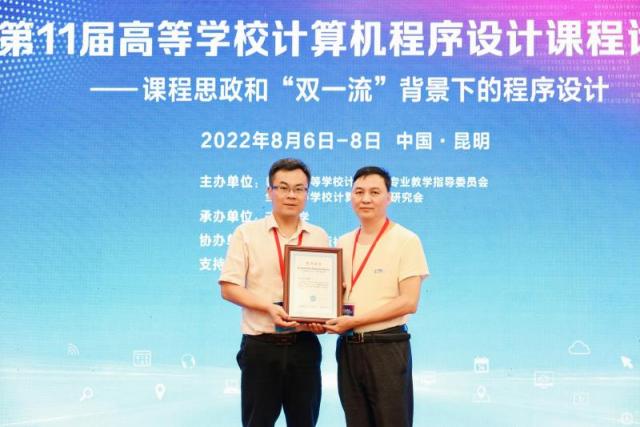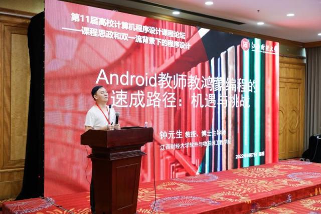 8月初,教材正式印刷前,钟元生受邀在第十一届高校计算机程序设计课程论坛上,介绍了Android编程教师快速切换到鸿蒙编程教学的方法。