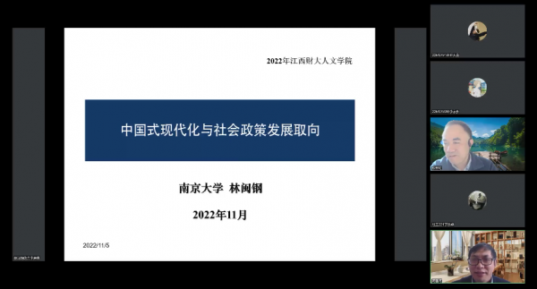 11月5日,教育部特聘教授林闽钢教授应邀为人文学院师生作题为“中国式现代化与社会政策发展取向”的专题学术讲座。讲座由院长蒋国河教授主持,人文学院师生200余人聆听讲座。