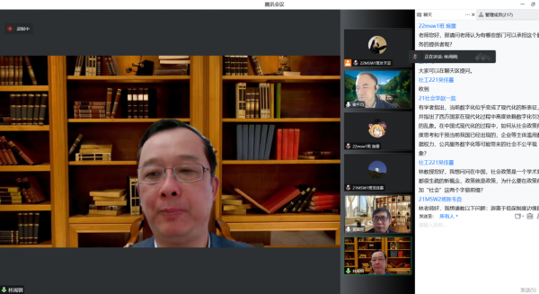 林闽钢教授的讲座围绕社会政策研究缘起、中国式现代化的意蕴、理解社会政策作用的两个角度、中国社会政策的发展取向四个方面展开理论和现实分析。林教授介绍了社会政策的标志性事件与由来、社会政策的定义、中国社会政策发展以及社会政策时代的来临,阐述了中国式现代化的意蕴,从物质、以人为中心以及制度等方面阐述了现代化的三个层面。他指出,社会政策作为制度组成部分,是调节物质与人的现代化的中间变量。中国式现代化实现了物、人和制度三者的协调发展。他认为,中国社会政策发展取向在于社会政策的积极协调作用落脚点发生了变化,在于实施以人民为中心的社会政策,强调建设社会服务国家,以大国社会政策,走社会投资之路,实施积极的、家国一体的社会政策,使得经济、民生相互促进,实现经济发展与民生改善的良性循环,最终实现共同富裕。林教授以其厚实的社会政策理论功底将社会政策的历史与现实、理论与实践、宏观与微观、学术研究与政策方针、国内与国外有机结合起来,让师生们“品尝”了一顿内容丰富、观点新颖、极富启发意义的学术大餐,极大地开阔了同学们的学术视野。