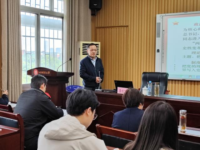 11月23日下午,校党委副书记龚剑飞到金融学院上形势与政策课暨宣讲党的二十大精神。院党委书记王琪主持,学院部分师生代表聆听宣讲。
