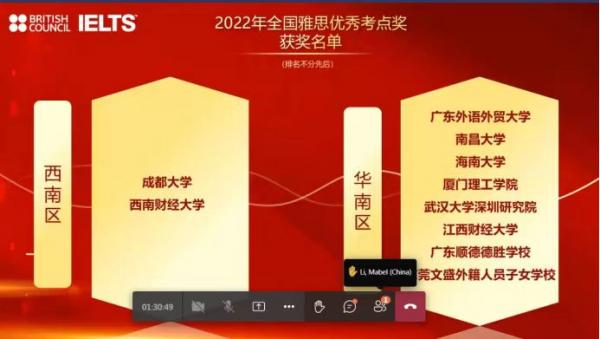 12月1日,由英国文化教育协会(British Council)举办的2022年全国雅思考务工作会议在线召开。江西财经大学雅思机考考点荣获2022年“全国雅思优秀考点奖”。