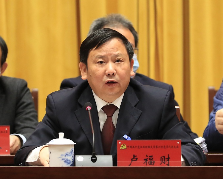 “建成‘特色鲜明、优势突出、人民满意、国际知名的高水平财经大学’是所有江财人的殷殷期盼,更是江财这所具有浓厚红色基因的社会主义高校的使命担当。”卢福财号召,让我们紧密地团结在以习近平同志为核心的党中央周围,在学校新一届党委的领导下,以第六次党员代表大会为新的起点和契机,紧紧依靠全体党员和全校师生,以永不懈怠的精神状态和一往无前的奋斗姿态,为实现学校第六次党代会确定的目标任务而努力奋斗,为加快教育现代化、建设教育强国、办好人民满意的教育,实现中华民族伟大复兴的中国梦作出新的更大贡献!