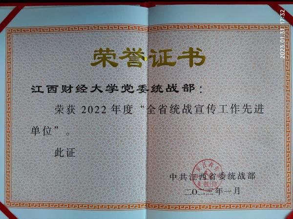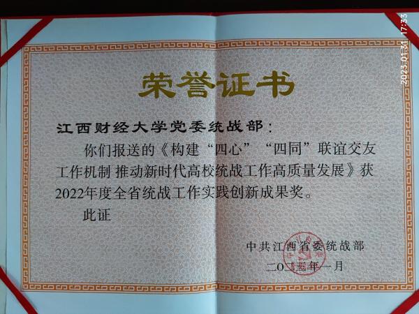 2022年,在省委统战部、省委教育工委的关心和指导下,校党委坚持以习近平新时代中国特色社会主义思想为指导,深入学习宣传贯彻党的二十大精神和习近平总书记关于做好新时代党的统一战线工作的重要思想,全面贯彻落实中央和省委关于统一战线的重大决策部署,切实履行统战工作主体责任,不断推进学校统一战线和统一战线工作高质量发展并取得新成效:学校被省委统战部授牌“新时代统一战线理论研究创新基地”,连续8年获评全省统战宣传信息工作先进单位,多次获全省统战理论政策研究和统战工作实践创新成果奖;9篇建言被《中国侨联侨情专报》采用(全省共17.5篇),1篇建议被评为年度优秀建议;5个民主党派校级组织获党派省委会表彰,党外人士获国家部委和民主党派中央等上级表彰40余人次;19份建言报告获省级以上领导批示,其中,中央领导批示2份,省委省政府主要领导批示9份;立项省委统战部统一战线专项课题2项;统战成员在光明日报、江西日报等刊发理论文章 20余篇;30余项党外建言被采用为全国人大、省人大和省政协建议提案等,受到人民日报、中央电视台、江西日报等多个主流媒体关注,统战宣传工作形象和社会影响力持续提升。(图文/党委统战部 饶开明 彭清宁 编辑/吴宇彤 审核/一审 姜莹 二审 赵旻 终审 李大晖)