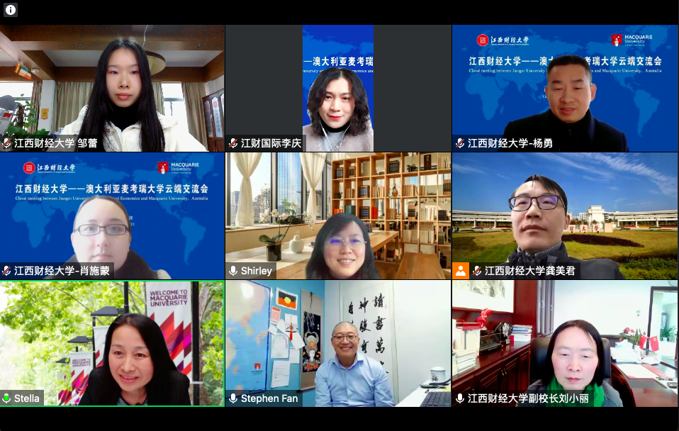6日下午,我校与澳大利亚麦考瑞大学举行线上合作洽谈会。麦考瑞大学校长特别助理Stephen Fan、项目主管Stella以及我校国际合作与交流处处长龚美君、国际学院院长吕晓梅和其他相关工作人员参加会议,会议由龚美君主持。