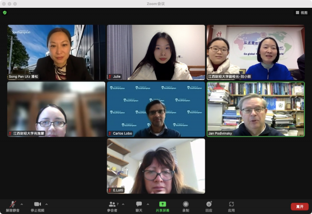 2月8日下午,我校与英国南安普顿大学举行线上合作洽谈会,副校长刘小丽出席并讲话。南安普顿大学经济学院院长E.Lotti、经济学院经济系主任JanPodivinsky、数学学院数学系主任CarlosLobo、国际化办公室主任潘松以及我校国际文化交流中心主任杨勇和其他相关工作人员参加会议,会议由杨勇主持。