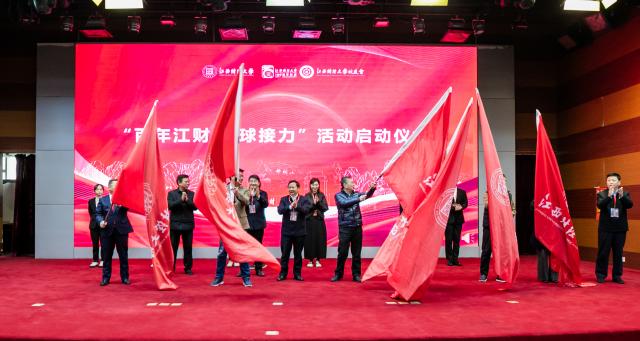 会上隆重举行了“百年江财·全球传旗”启动仪式。