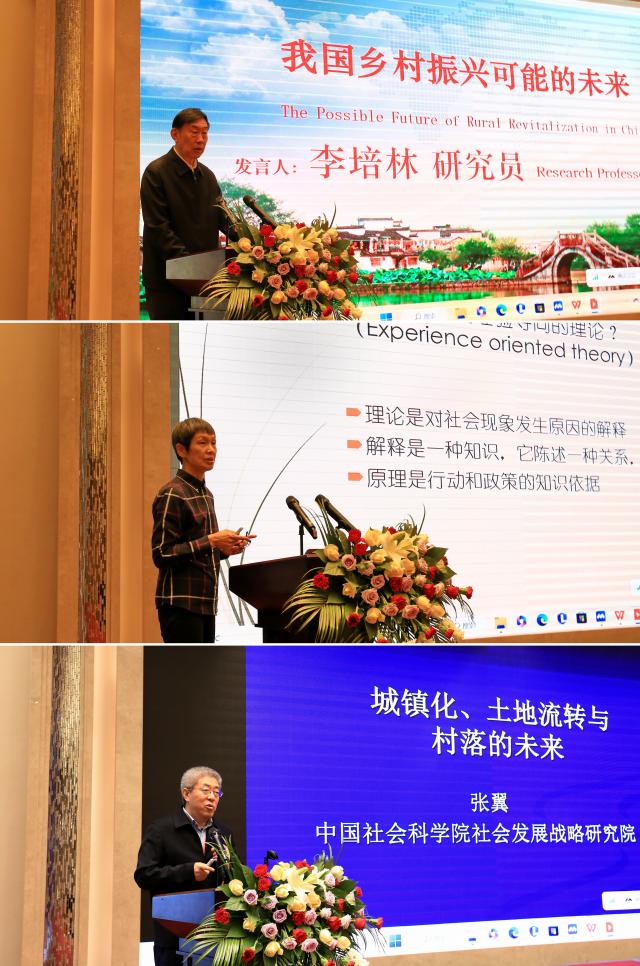 会议三个主题发言环节和国际论坛分别由中国社会学会秘书长、社会变迁研究会副会长谢寿光、《社会学研究》编辑部副主任张志敏、《当代财经》杂志社常务副社长王展祥以及北京大学社会学系教授熊跃根主持。邴正、张文宏、王天夫、文军、萧放、翟学伟、关信平、刘欣、冯仕政等专家学者分别就乡村振兴中的文化传承与文化变迁、社会结构变迁、乡村产业振兴及其多种发展模式、乡土价值的再认识、社会变迁与文化认同危机、充分发挥积极社会政策在乡村振兴中的作用等问题发表了演讲;何雪松、刘能、黄晓春、成伯清、杨典、胡荣、熊跃根、罗婧等学者分别就中国式现代化与全球南方社会学、乡村智慧治理、党建引领与基层治理创新、城市化背景下乡村多元价值开发、县域发展与乡村振兴、农民的民生保障获得感及乡村振兴的社会政策创新等进行了发言。我校欧阳静教授、胡宜教授、梁波教授、尹忠海教授也分别围绕乡村财政社会学的研究主题、乡村医疗空间的生产与秩序、乡村小产业的维持机制、中国式现代化的绿色精神等发表了演讲。国际论坛环节,田毅鹏、黄光伟、李秉勤、孙飞、Flavio、吴世友、银平均、吴杨等学者围绕东亚发展型社会政策、农村社区认知症服务支持体系、技能型劳动力教育培训策略、农村成年人慢性病状况等发表了演讲。