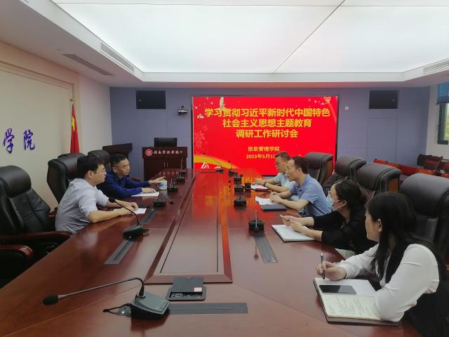 5月15日中午,信息管理学院党委召开学习贯彻习近平新时代中国特色社会主义思想主题教育调研工作研讨会,学院领导班子参加会议。