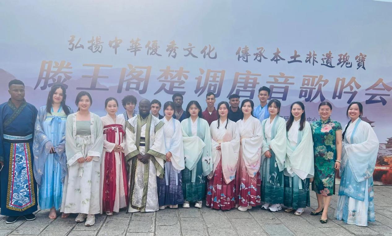 6月10日,是我国文化和自然遗产日。我校来自中国、加蓬、南非、印度尼西亚、喀麦隆等8个不同国家的12名来华留学生和我校民乐队6名成员共赴江西名楼“滕王阁”参加由滕王阁管理处、东湖区非物质文化遗产研究保护中心共同举办的“滕王阁楚调唐音歌吟会”活动,旨在弘扬中华优秀文化,传承本土非遗瑰宝。
