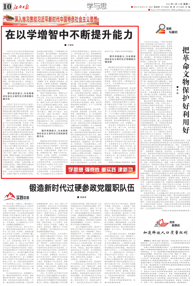 6月12日,《江西日报》“学与思”版块刊登我校党委书记卢福财教授理论文章《在以学增智中不断提升能力》。