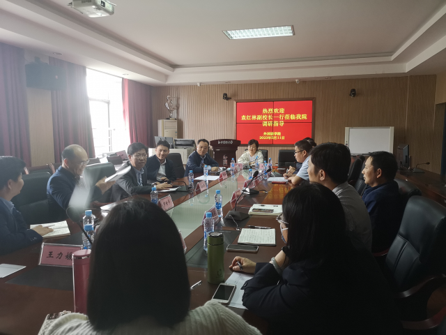 5月11日上午,党委常委、副校长袁红林到外国语学院和人文学院调研学科建设及调整优化工作。科研处处长陈思华、研究生院院长罗世华等陪同调研,调研座谈会由研究生院副院长李洪义主持。