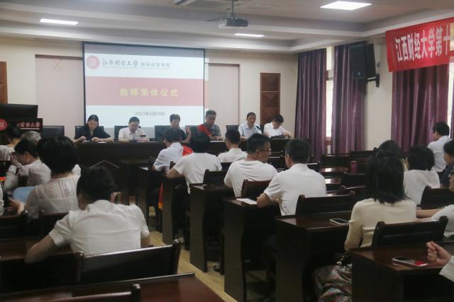 6月28日下午,国际经贸学院举办2023年度国际经贸学院教师荣休仪式共同庆祝曹絜、张小俊、何勇三位老师退休。学院领导班子,全体老师共同参加了此次活动。