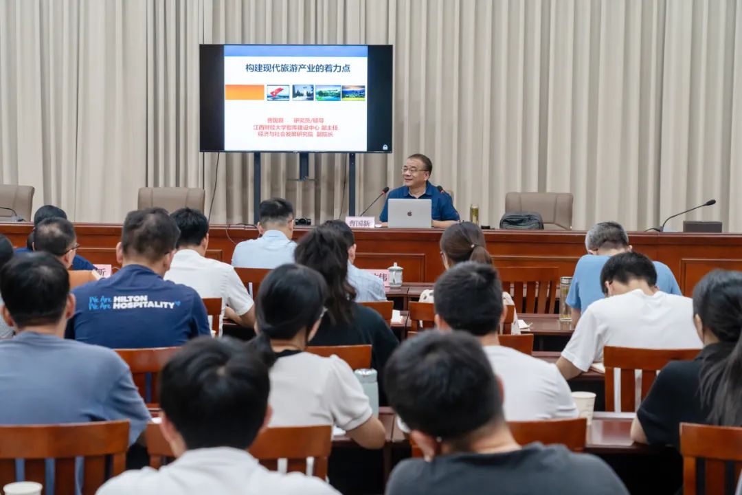 讲座中,曹国新详细讲述了江西旅游发展的脉络与沿革,分析全省旅游产业发展进程中取得的阶段性成就与经验。以及如今金融主导的旅游时代背景下,传统资源型景区如何摆脱“资源诅咒”,整体提升景区“核心力”,实现跨越式发展的思考。(文/曹国新 审核/一审 姜莹 二审 赵旻 终审 李大晖)