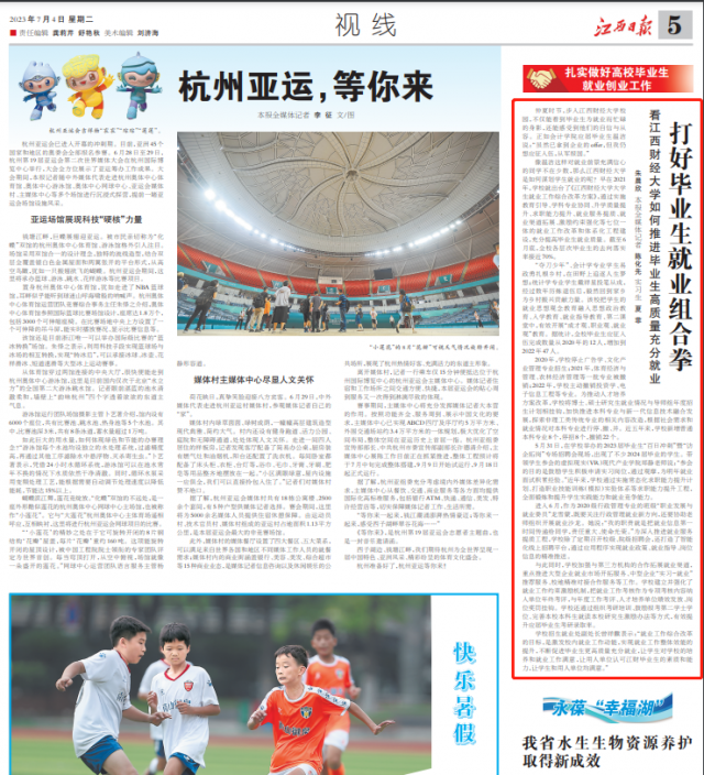 近日,江西日报05版“扎实做好高校毕业生就业创业工作”栏目报道我校积极推进七位一体就业工作改革和体系化工程建设,打好毕业生就业组合拳,不断促进毕业生高质量充分就业。