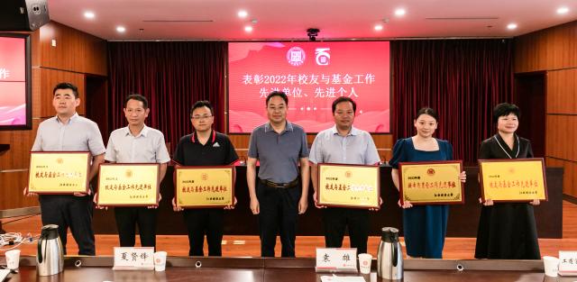 会上宣读了学校《关于表彰2022年度校友与基金工作先进单位、先进个人的决定》,袁雄为先进单位及个人颁发奖牌和荣誉证书。