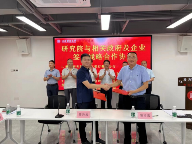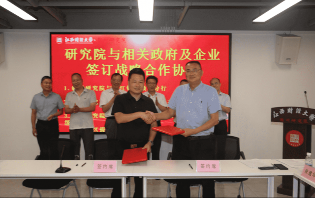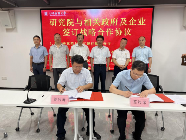 赣州研究院与九江银行股份有限公司赣州分行、江西中佳国际珠宝有限公司、南康区坪市乡人民政府等相关企业和地方政府签订战略合作协议。