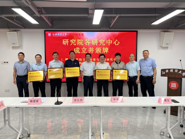 赣州研究院内设各研究中心(文旅政策与规划研究中心、数字资产研究中心、数字艺术创新研究中心、金融研究中心、跨境电商研究中心等)成立,袁红林颁牌。
