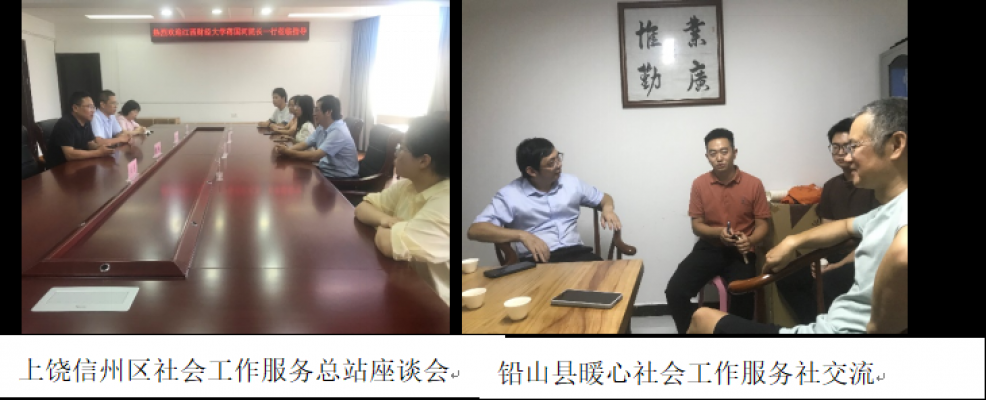 通过各个站点的走访,发现各实践基地均为同学们准备了较好的工作和生活条件,同学们也积极参与到实习点的具体工作中,完成基地安排的各项任务。围绕学生社会实践的情况,在与信州区民政局副局长曹辉、铅山县民政局副局长叶福春等当地民政领导和各机构负责人的座谈中,各方都认同高校和地方加强交流对社工人才队伍建设,提升社会工作成效具有积极意义,探讨了社工机构发展、社工人才培养、乡镇社工站建设全覆盖建设中的运行机制及资金使用、社工机构工作效果评价,社工视觉化和品牌打造等问题。蒋国河认为需要以“党建+”为核心优化五社联动机制,创新自愿者激励机制;进一步落实产学研协作工作的具体内容,在提升学生实务技能的同时发展科研能力,提高社会工作项目的专业化水平。郑翩翩博士也重点围绕养老机构发展的要素、社会文化影响居民养老方式选择等问题与机构负责人进行了详细探讨。针对同学们在服务中遇到的困惑,蒋国河强调这正是同学们理论与实践相结合的契机,鼓励同学们要勤于思考,从理论的视角总结社工机构在运营中的成功经验,分析问题的解决之道,争取形成较为深入的理论思考,并将其体现本次实习的总结材料中。