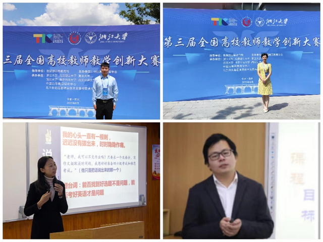8月18日至22日,第三届全国高校教师教学创新大赛现场赛决赛在浙江大学紫金港校区举行。我校四位教师参加国赛,其中两位教师参与现场赛决赛,共获得个人(团队)二等奖2项,三等奖2项。较第二届增加了二等奖1项,三等奖2项。我校综合成绩位居全省高校前列。