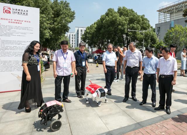 迎新广场上创新不断随处可见,个性十足。有的学院制作了展现学院教学科研等成果的欢迎展板,欢迎远道而来的新同学。有的设立了党员先锋岗,学生党员带头为新生服务;有的根据自己的专业特色设计了特色的迎新活动,如艺术学院的同学现场进行音乐表演、软件与物联网工程学院的同学制作了机器狗欢快行走、VR现代产业学院设置了VR科技成果体验区,让新同学留下了深刻的印象同时,坚定了专业学习的信心。