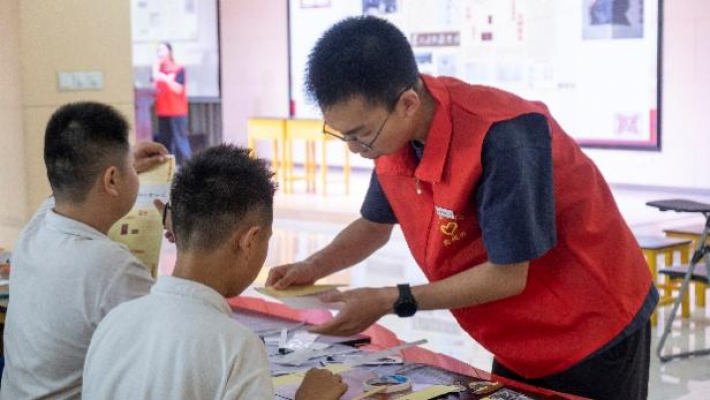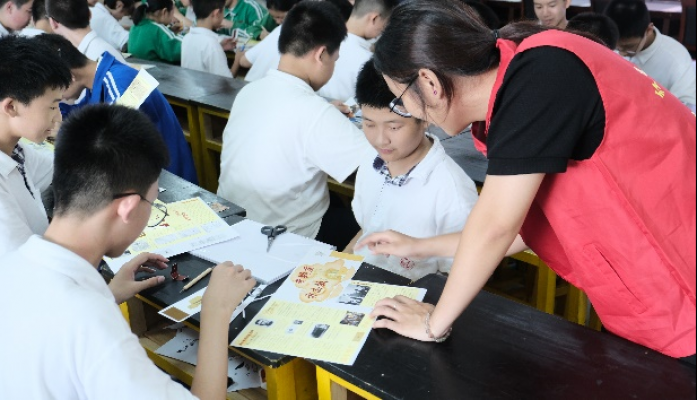 江西师范大学附属中学初二年级年级组长蔡爱玲老师对同学们的到来表示感谢。她说,进入初中,同学们的学习已经很繁忙了。但学校还是决定拿出时间来组织红色教育。这个学期,初二的同学刚好接触到近代史,也很有必要加深对这一段历史的理解。她表示,以往学校主要是通过前往红色场馆研学等方式展开相关活动。这一次,江西财经大学的同学们带来了全新的红色文化体验活动,手把手教学生制作红色立体书,同学们兴趣很高、效果很好。