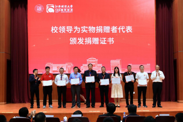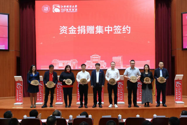 10月27日下午,江西财经大学建校100周年“百年江财发展基金”捐赠集中签约仪式在图文信息大楼顺利举行。校党委书记卢福财,校长邓辉,校党委常委、副校长阙善栋,捐赠校友企业代表,各地校友会,社会爱心企业以及各学院、部门负责人和师生代表出席。仪式由校党委常委、副校长袁雄主持。