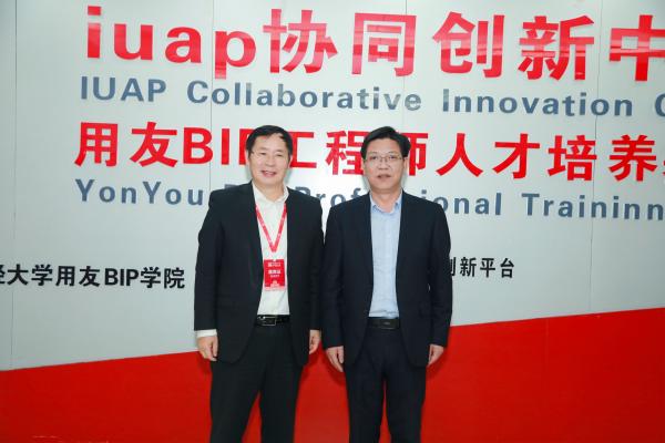 王文京和袁红林共同为iuap协同创新中心、用友BIP工程师人才培养基地揭牌。