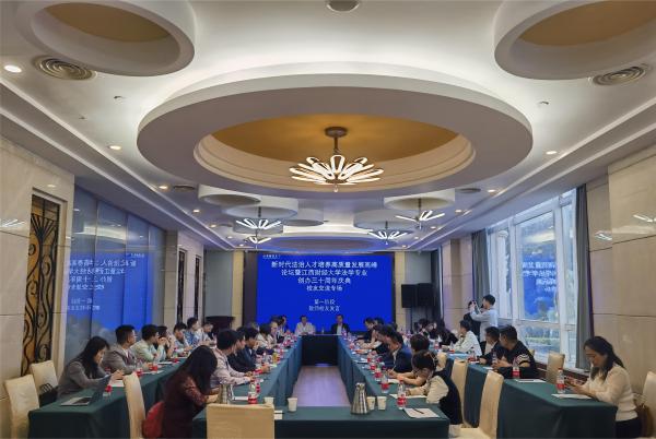 邓辉代表学校向法学院全体师生员工和广大校友表示祝贺。他指出法学院三十年历经风雨、造就辉煌的关键在于江财法律人不甘平庸,迎难而上,追求卓越;团结协作,砥砺前行;自立自强,奋发有为。他希望法学院在新的三十年致力于培养一流法治人才,聚焦新需求,开辟新赛道,创新人才培养模式,在学校学术研究型大学、一流数字财经大学及服务经济社会发展标杆大学转型建设中找准自身定位,为新时代法治建设贡献应有之力。
